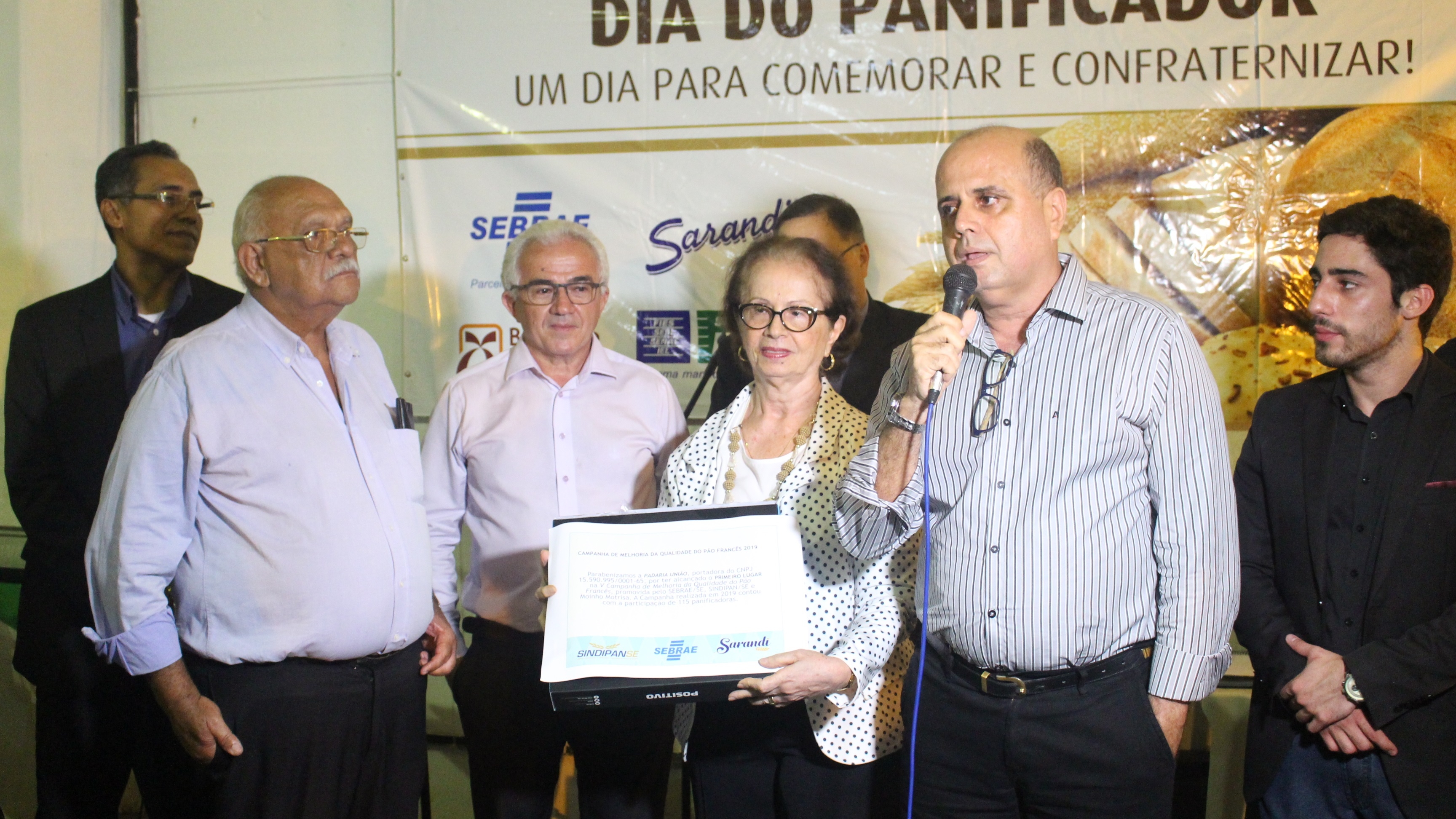 A padaria União, localizada no bairro Luzia, ganhou a disputa em primeiro lugar e levou o certificado de produção do melhor pão francês do Estado, pela segunda vez consecutiva. “Só tenho a agradecer minha equipe, nossos colaboradores por todo o empenho e dedicação em oferecer aos nossos clientes produtos de qualidade. Prezamos muito pela inovação, por investimentos em processos gerenciais e de produção, acredito que seja por isso, esse resultado alcançado mais uma vez na Campanha do Pão Francês”, comemora o empresário Carlos Alberto. O empresário ganhou 20 sacas (50kg/cada) de farinha de trigo, oferecido pelo Moinho Motrisa de Sergipe, e o padeiro Wellington Rodrigues Santos ganhou um notebook.